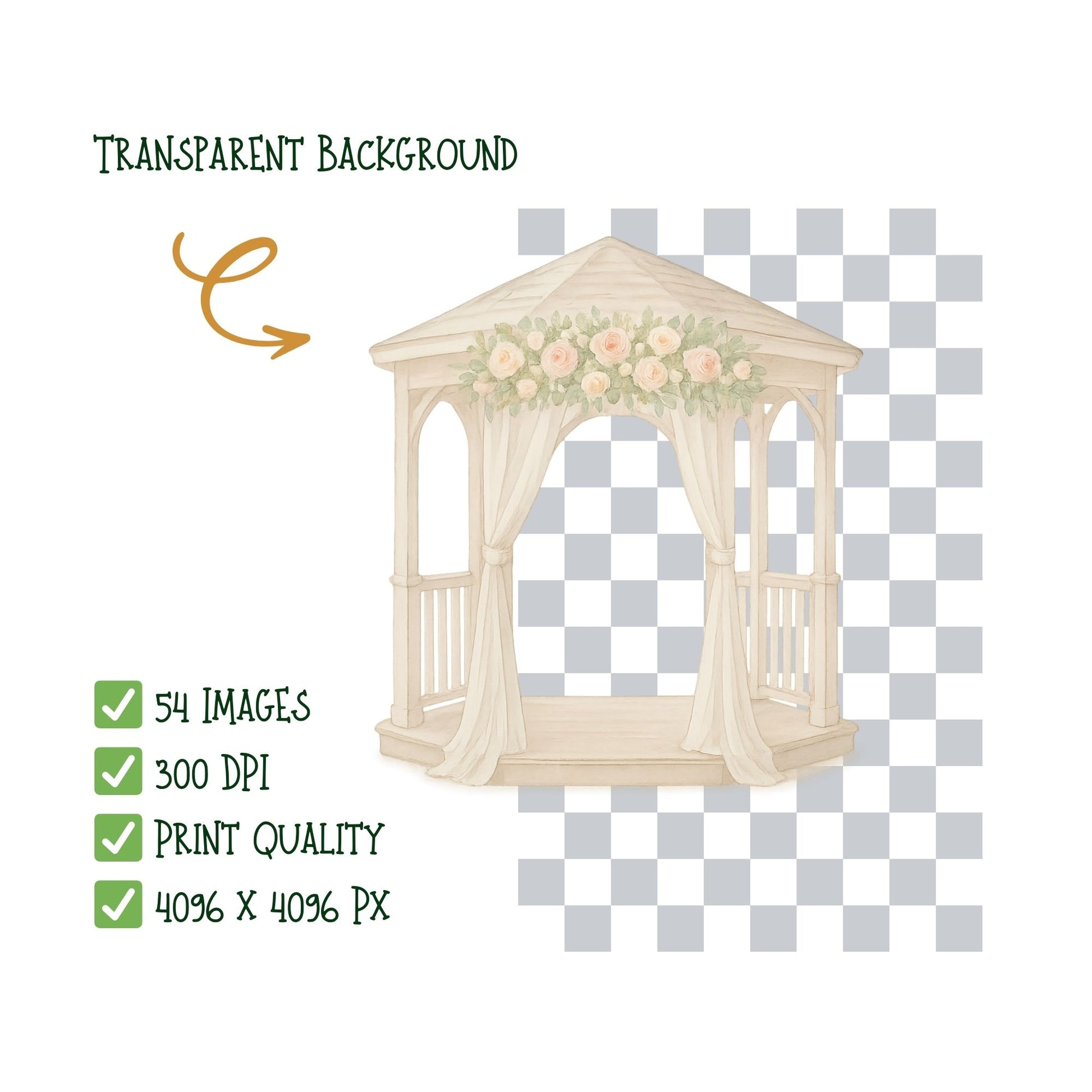 This elegant collection includes 54 hand-painted PNG files, perfect for creating timeless wedding designs filled with romance and sophistication.